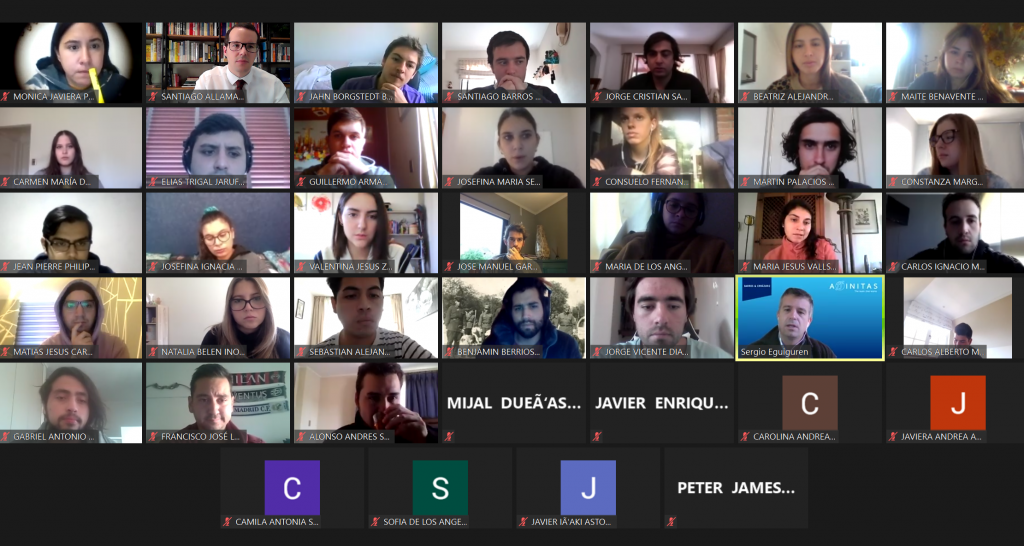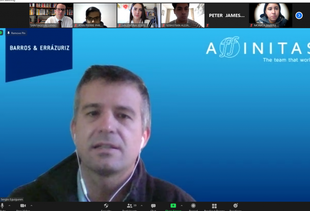 El invitado fue Sergio Eguiguren quien conversó con los alumnos, unos 30 minutos sobre los siguientes temas: Las etapas que él había vivido desde el egreso de la universidad hasta llegar a ser socio de un renombrado estudio jurídico; las habilidades que se buscan en un abogado en el mundo laboral; la experiencia de hacer un postítulo y trabajar en el extranjero; y las diferencias entre trabajar en Derecho Comercial en el sector privado versus el sector público.