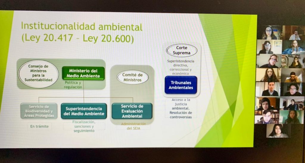En esta jornada se realizó una clase vía Zoom con la Magistrada del Tribunal Ambiental de Santiago, la Sra. Daniella Ramírez , con el objetivo que los alumnos puedan compartir de primera fuente con un Juez de un Tribunal Especial, tener una visión más concreta del funcionamiento, estructura y organización del Tribunal en la cual la magistrado se desempeña.