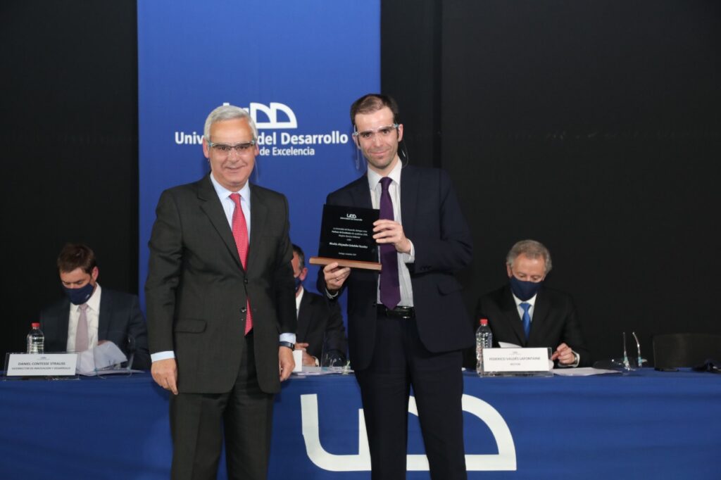 La Universidad del Desarrollo realizó el pasado lunes 8 de noviembre la ceremonia de premiación dirigida a todos sus profesores de pregrado y postgrado que fueron elegidos como docentes de excelencia durante el año académico 2020.