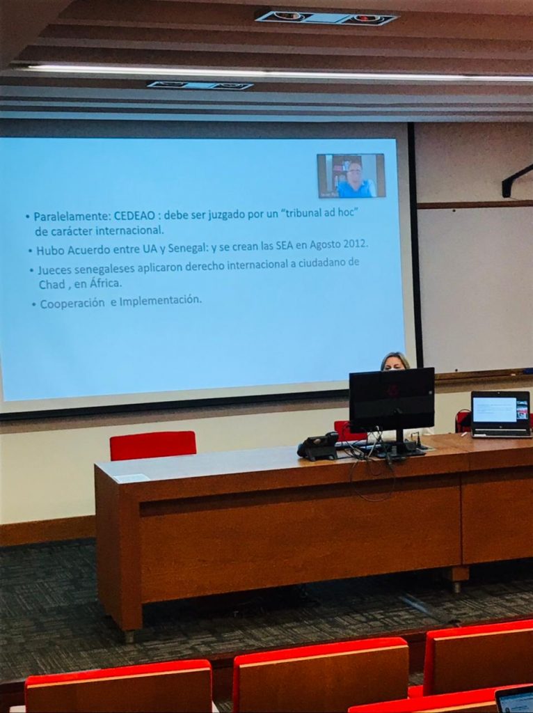 El pasado 20/04 alumnos de Derecho Internacional Público (cátedra de la Profesora Virginia Caruso) de la Facultad de Derecho, presenciaron una clase impartida por el Profesor Javier Ruiz desde La Haya, Países Bajos. El experto invitado es abogado, especialista en Derecho Internacional (TMC Asser Instituut de La Haya e Universidad de Leiden), posgraduado en derechos humanos (Universidad de Barcelona) y en derecho penal internacional (TMC Asser Instituut, Centro Internacional de Terrorismo de La Haya y Eurojust), diplomado en derechos humanos y derecho internacional humanitario (American University, Washington Collage of Law); investigador académico (Universidad de Amsterdam) y consultor jurídico dedicado a la litigación estratégica en la Corte Europea de DDHH de Estrasburgo y en el Consejo de DDHH de las Naciones Unidas de Ginebra.