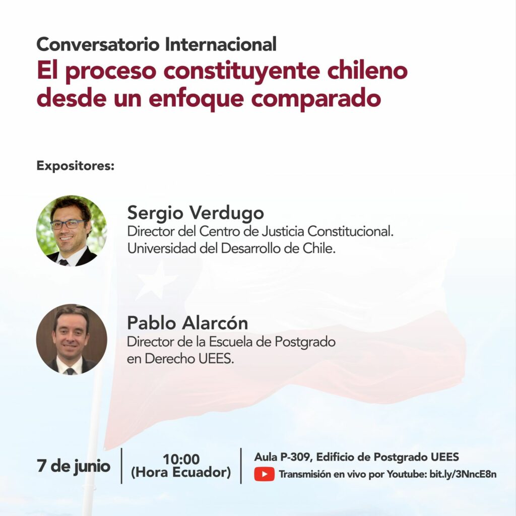 La Escuela de Postgrado en Derecho de la Universidad Espíritu Santo (UEES), ubicada en Ecuador, organizó el pasado martes 07 de junio el conversatorio «El proceso constituyente chileno desde un enfoque comparado«, el cual se desarrolló de manera semipresencial.