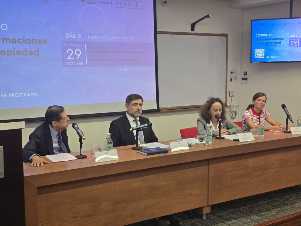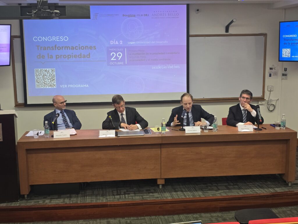 Durante los días martes 28 y miércoles 29 de octubre se realizó el Congreso “Transformaciones a la Propiedad”, organizado conjuntamente por la Fundación Fueyo UDP, las Facultades de Derecho de la Universidad Diego Portales y de la Universidad del Desarrollo, la Association Andrés Bello, la Universidad Paris Dauphine-PSL y el estudio jurídico PSL.