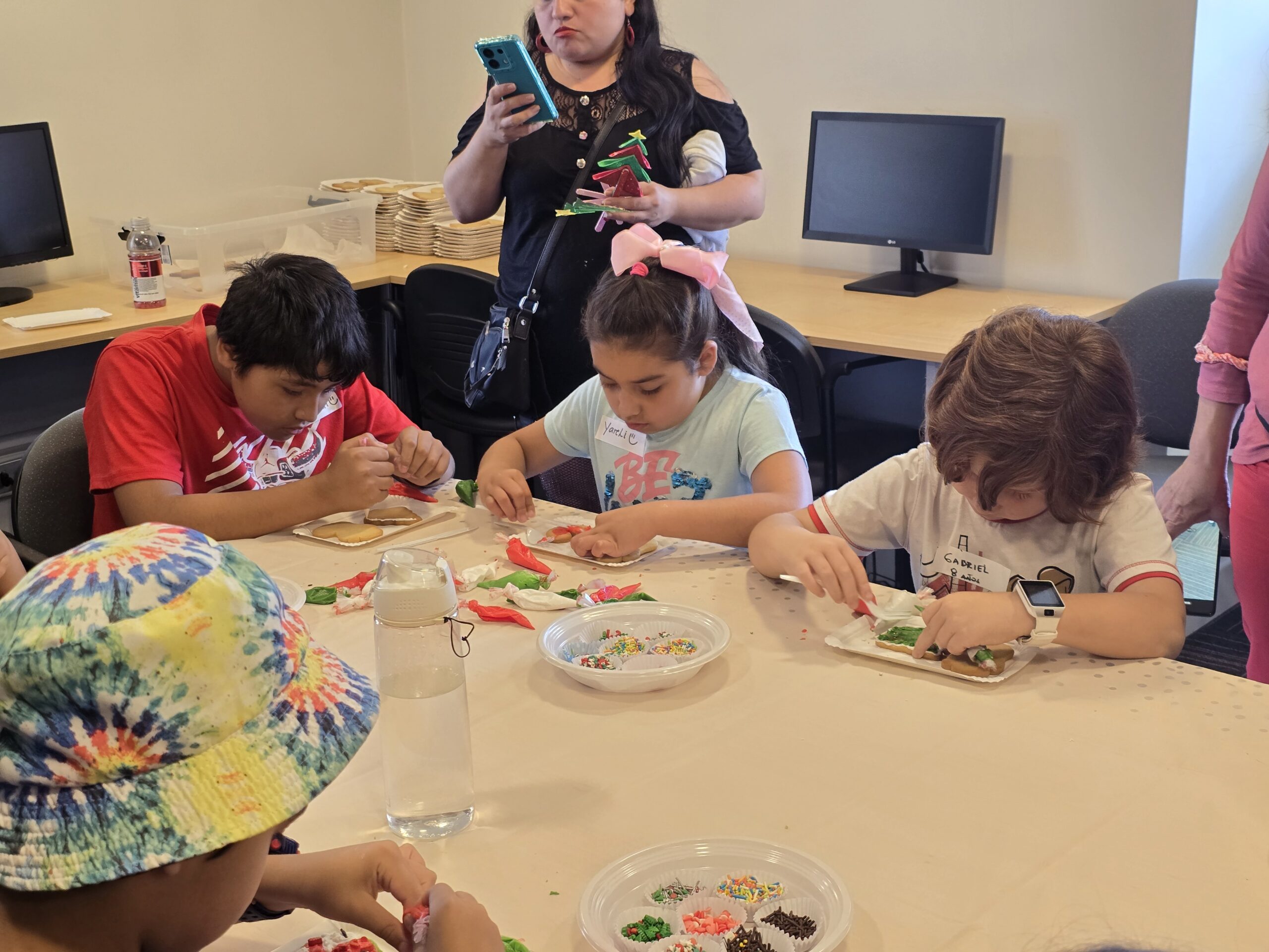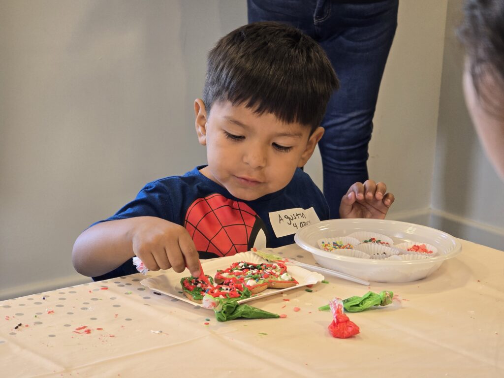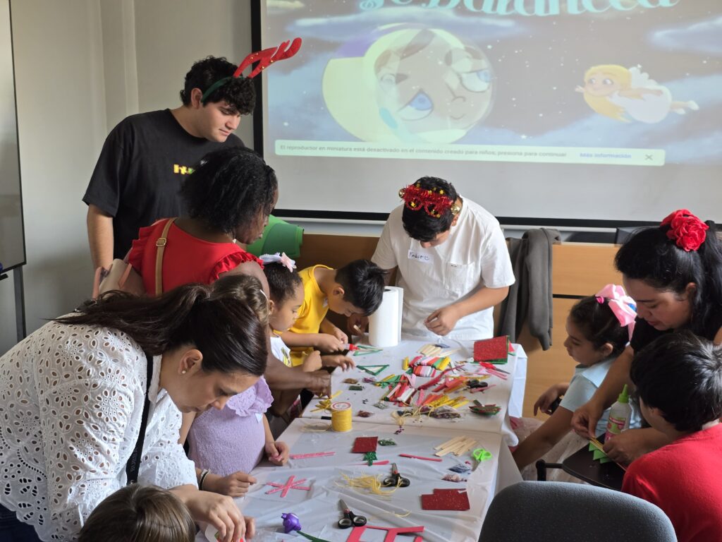 Durante la jornada, los niños y niñas participaron en distintos talleres recreativos, entre ellos decoración de galletas, creación de adornos navideños y un espacio especialmente habilitado para fotografías navideñas, pensado para compartir en familia y llevarse un recuerdo de la actividad. Al finalizar, cada niño recibió un regalo, cerrando una tarde llena de sonrisas y espíritu navideño.