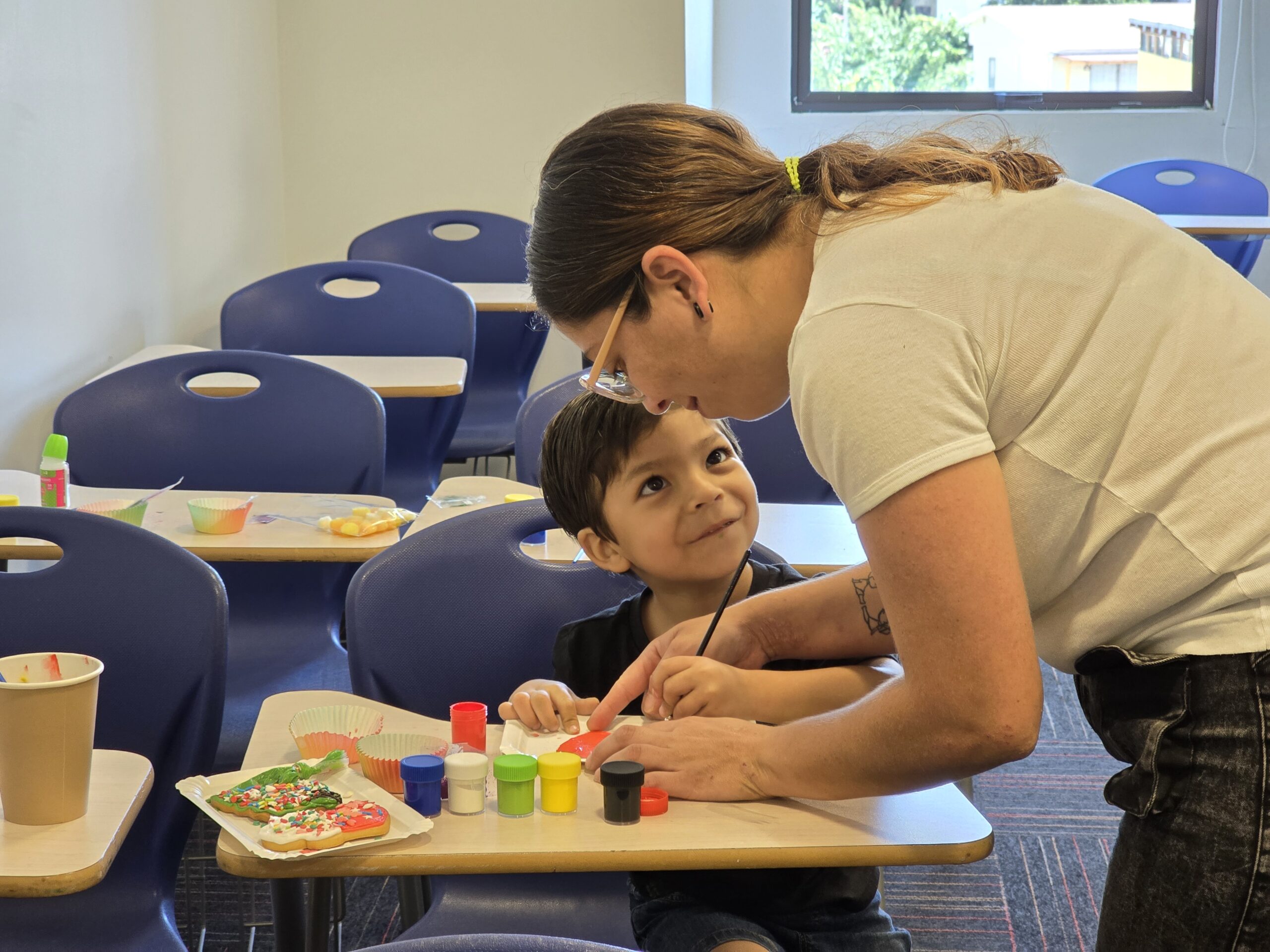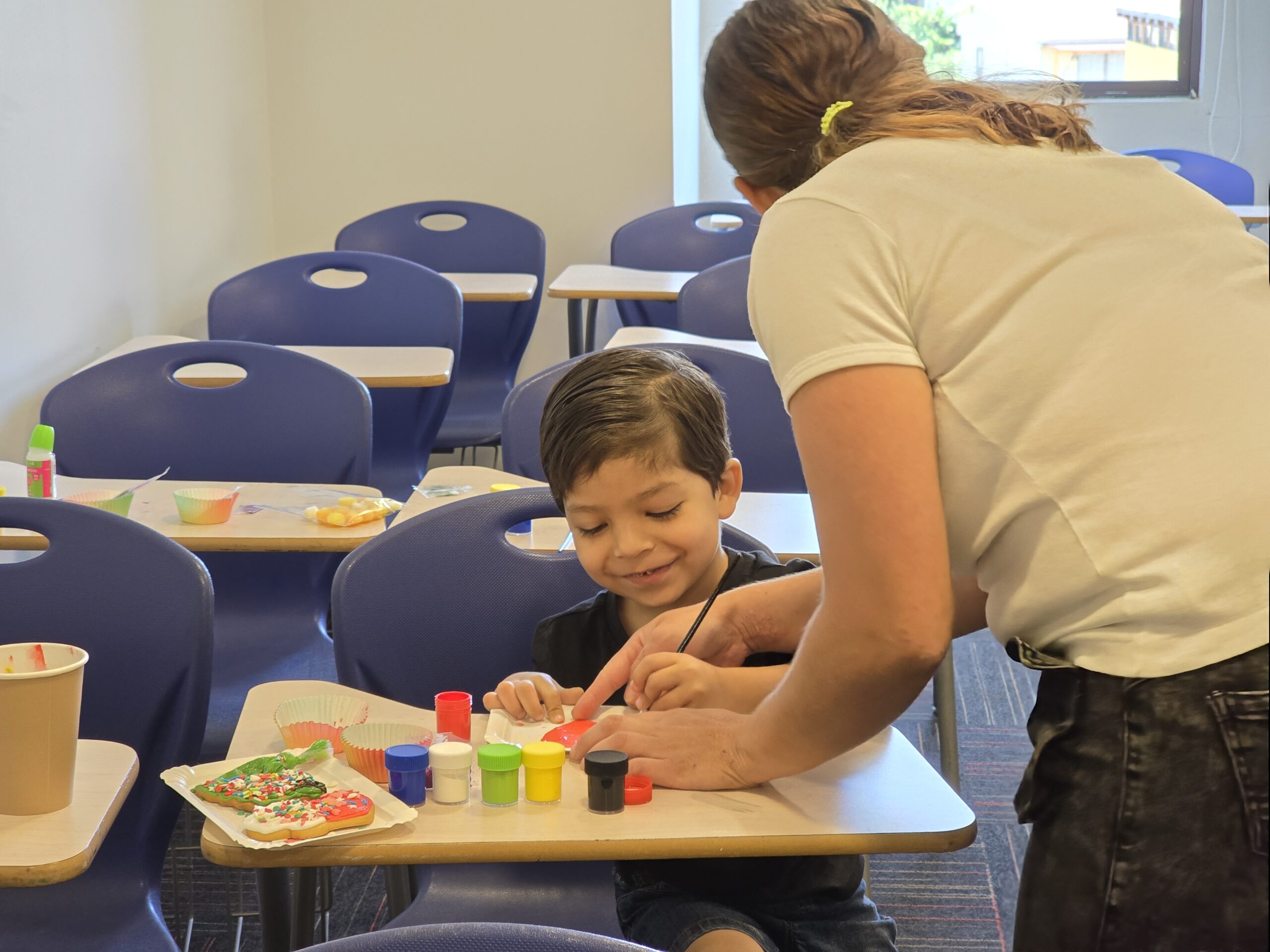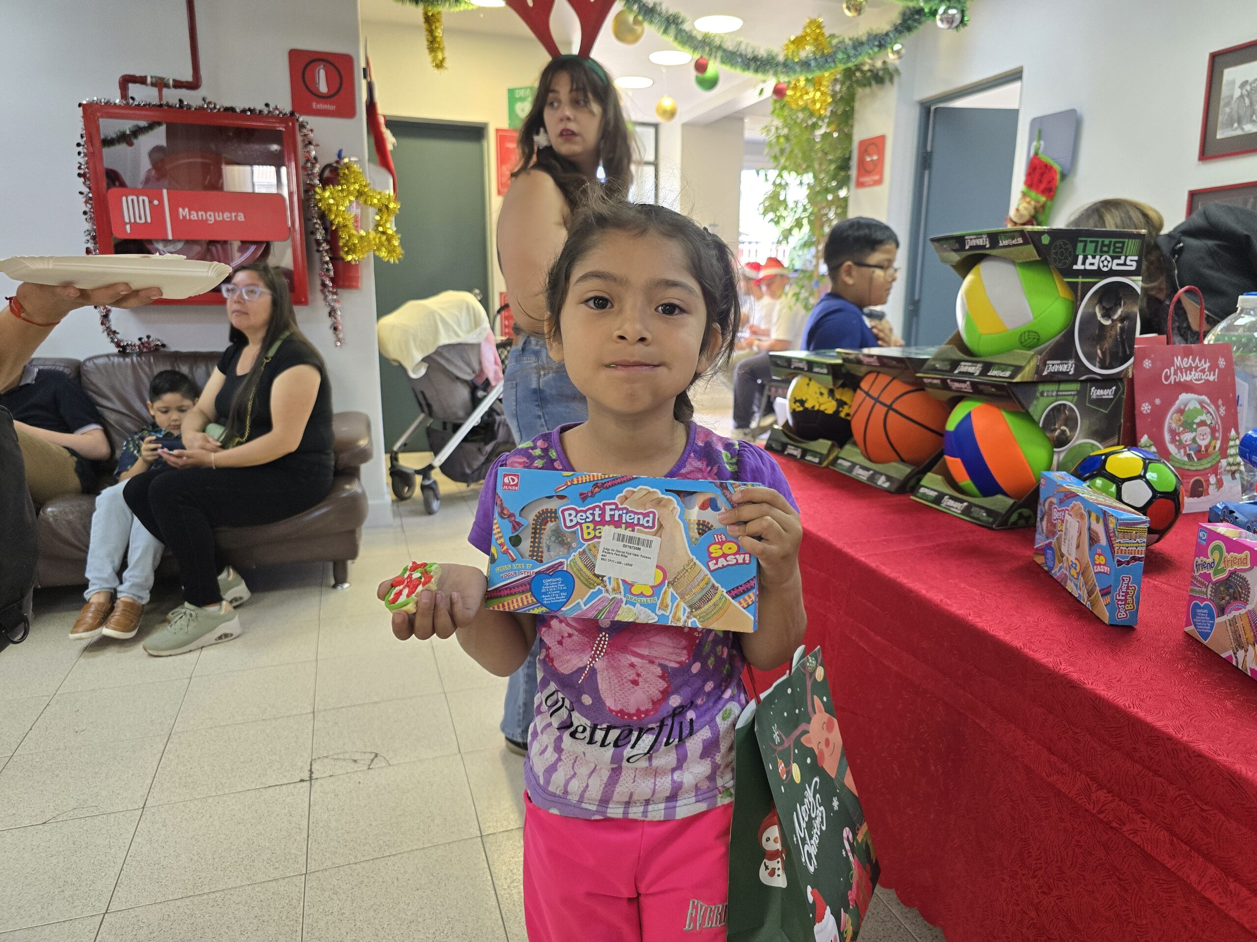 Durante la jornada, los niños y niñas participaron en distintos talleres recreativos, entre ellos decoración de galletas, creación de adornos navideños y un espacio especialmente habilitado para fotografías navideñas, pensado para compartir en familia y llevarse un recuerdo de la actividad. Al finalizar, cada niño recibió un regalo, cerrando una tarde llena de sonrisas y espíritu navideño.