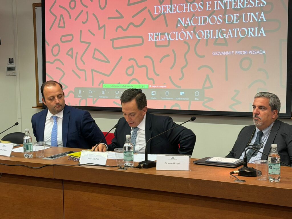Finalmente, el quinto foro abordó la tutela de los derechos e intereses nacidos de una relación obligatoria, con la presentación de Giovanni Priori y el comentario del profesor investigador del Centro de Derecho Regulatorio y Empresa, Jaime Carrasco.