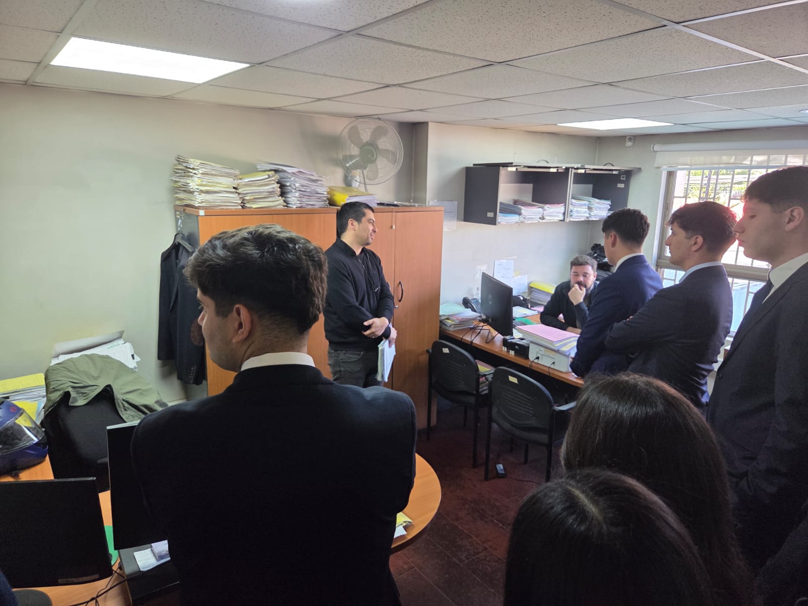 Durante el recorrido, los estudiantes visitaron distintas dependencias del juzgado, entre ellas la sala de atención de público, la oficina de partes, la sala de actuarios y las oficinas del Secretario Abogado y de la Jueza Titular. Asimismo, tuvieron la oportunidad de conocer a Claudia Díaz-Muñoz Bagolini, Jueza Titular, y a Sergio Infante García, Secretario Abogado del tribunal.